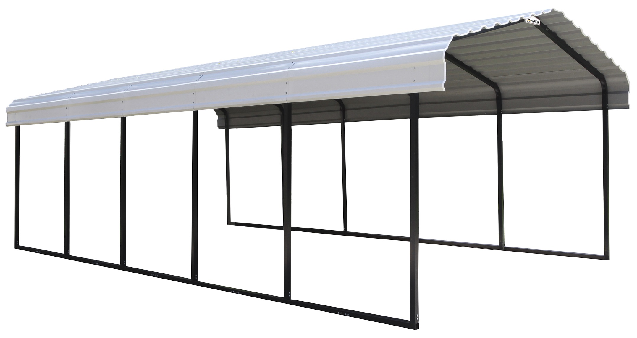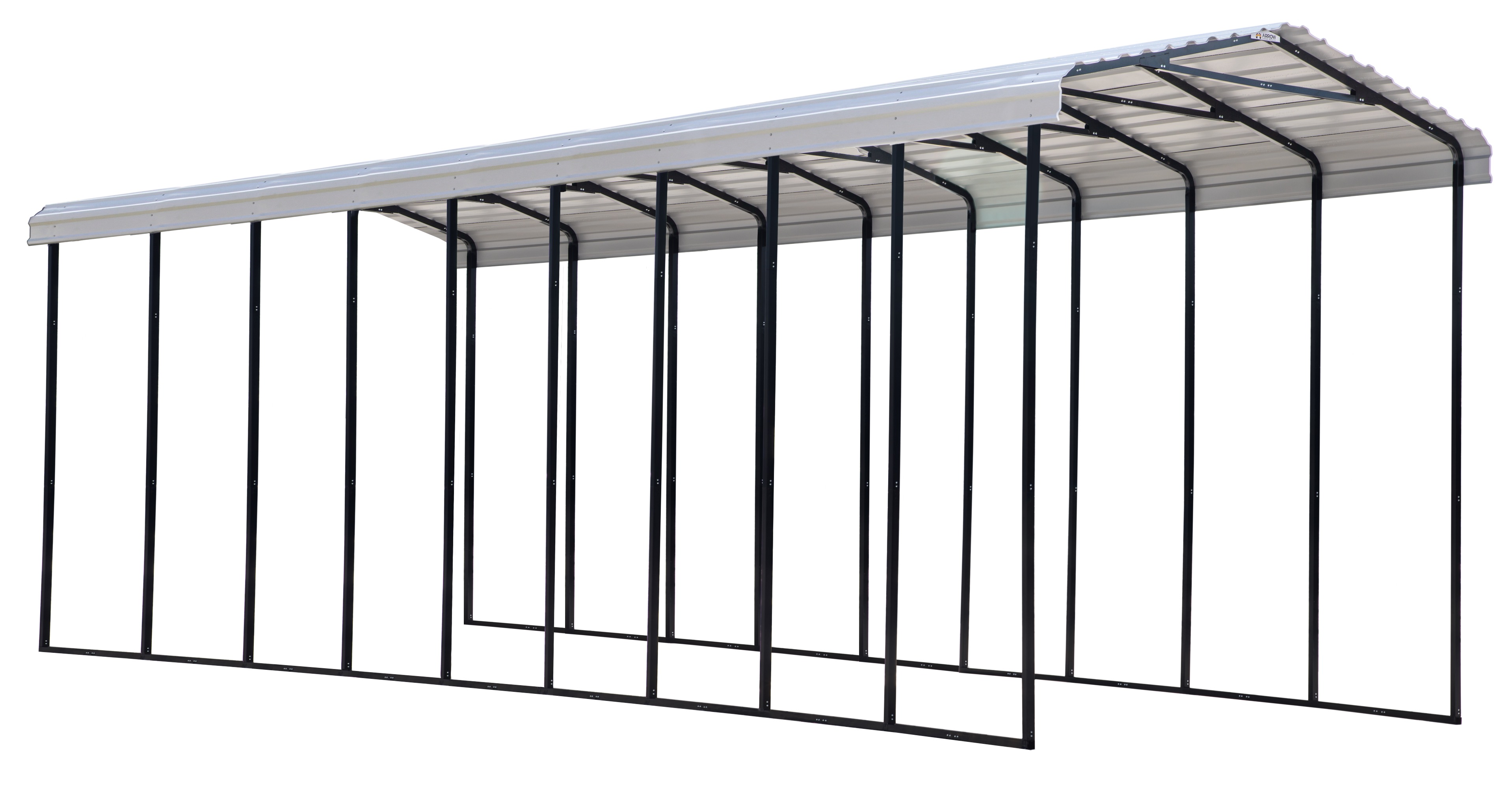 Ideal for two cars or larger vehicles with room to spare. This 20x20 two car metal carport provides ample space for side-by-side vehicle parking or one large vehicle with workshop area. Perfect for families with multiple vehicles or those needing extra covered workspace.